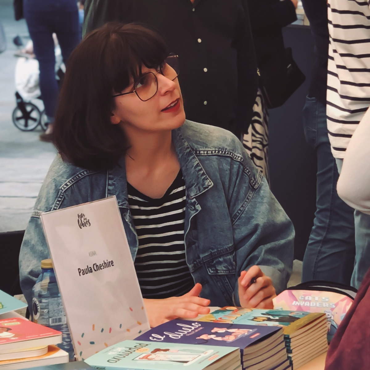 Paula Cheshire. Gallega orgullosa, zurda y amante de la magia, las meigas y el licor café, Paula se dedica a pintarrajear lo que se encuentra desde que le hizo un estampado nuevo al sofá de su casa con rotulador a la tierna edad de 4 años.